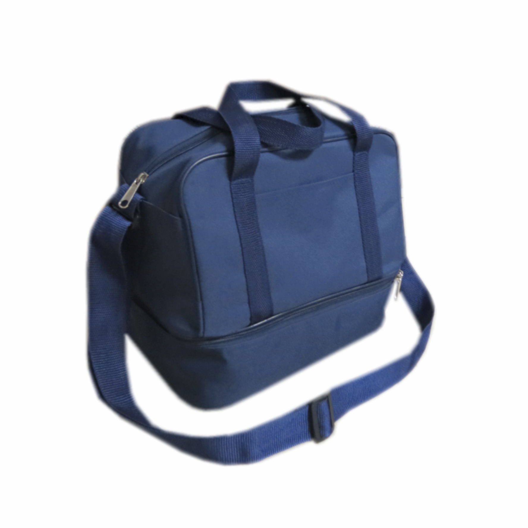 1 Main Zip Opening Compartment, 1 Base Compartment, Wet And Dry Compartment, Front Flat Zip Pocket, 2 Short Carry Handles And Adjustable Detachable Sling.